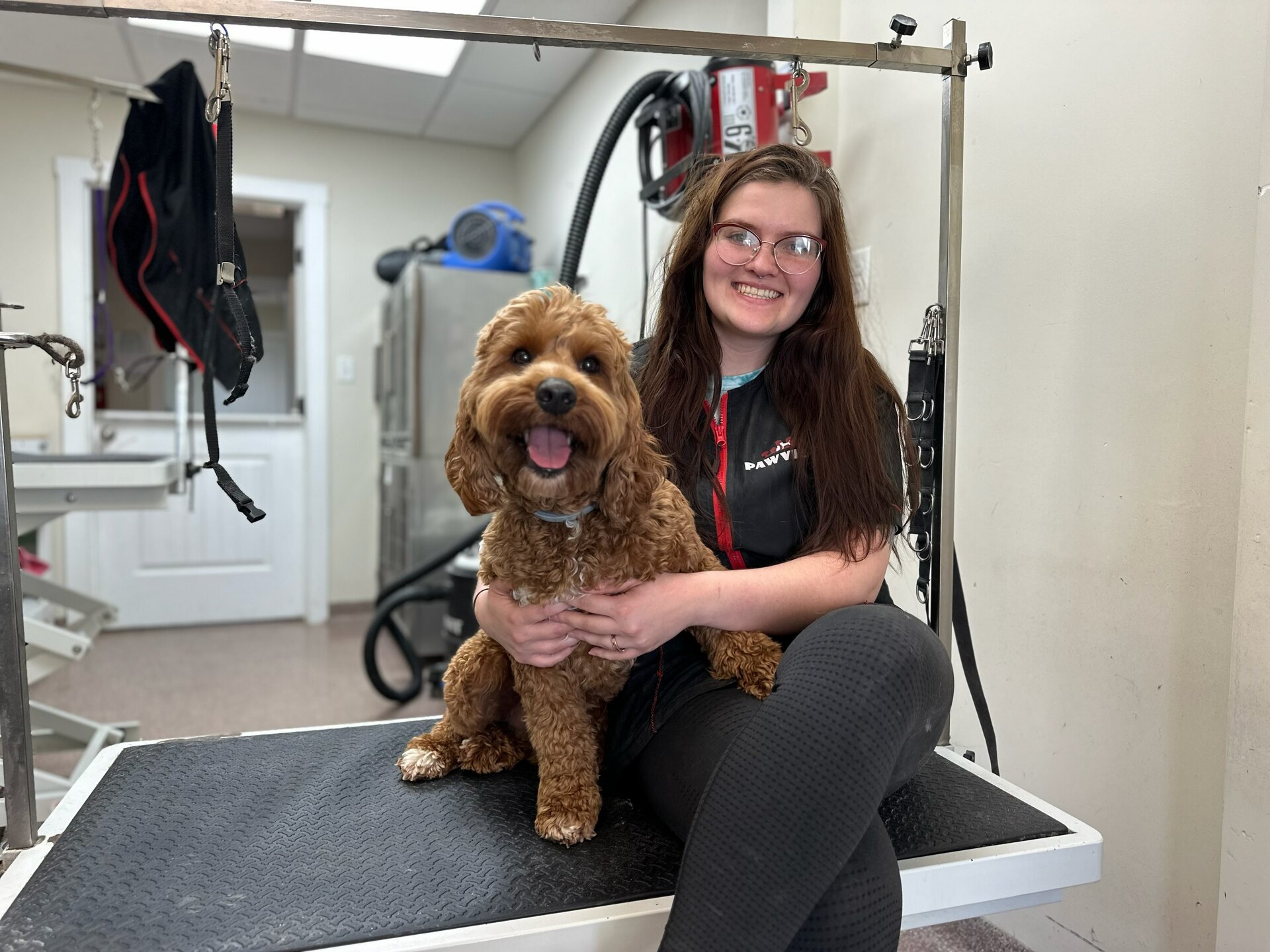 ONE GROOMING SMOCK - GROOMING SMOCKS DO NOT NEED TO HAVE THE PAWVILLE LOGO HOWEVER THEY NEED TO BE BLK, RED OR A MIX OF BOTH TO STAY ON BRAND WITH THE PAWVILLE THEME IN OUR SALONS.